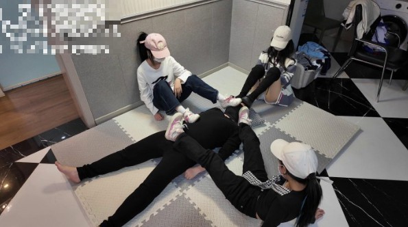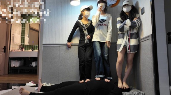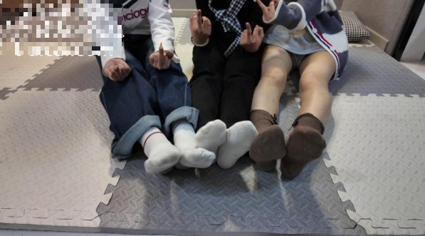 [内容概要] : 粉丝来体验女生的群体汗脚叠加在脸上,压迫胸口。
