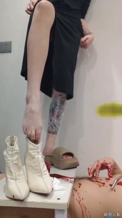 [视频名称] : 黑衣女王血腥插马眼1_衣架插入高跟鞋挤压喷血